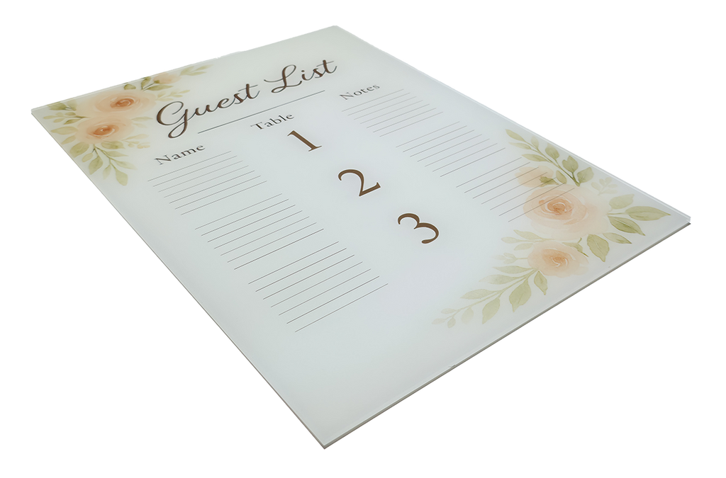 Acrylic offers a clean, modern presentation that lets your design stand out without distraction. Its clarity and rigidity make it ideal for professional signage, displays, and branded environments.